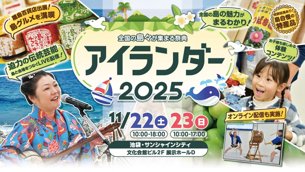 11月22(土)〜11月23(日)日本全国150を超える離島が参加する、「島と都市」、「島と島」をつなぐ交流イベント『アイランダー2025』に出展いたします。